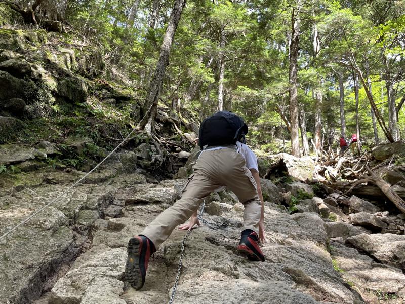 鎖場を越えてからは大きな岩の間を縫うように登って行く。