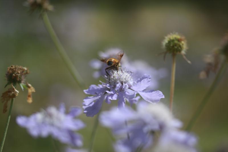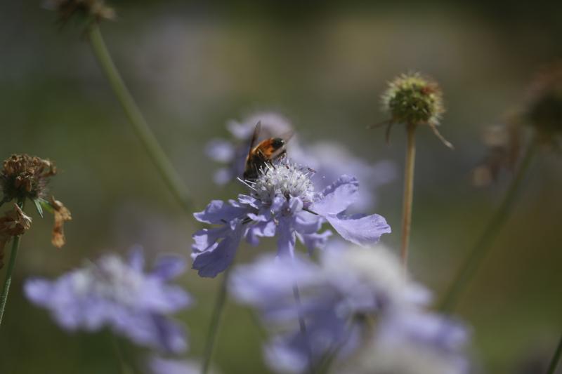 まずマツムシソウの前に鎮座していると、急に痛みが・・。