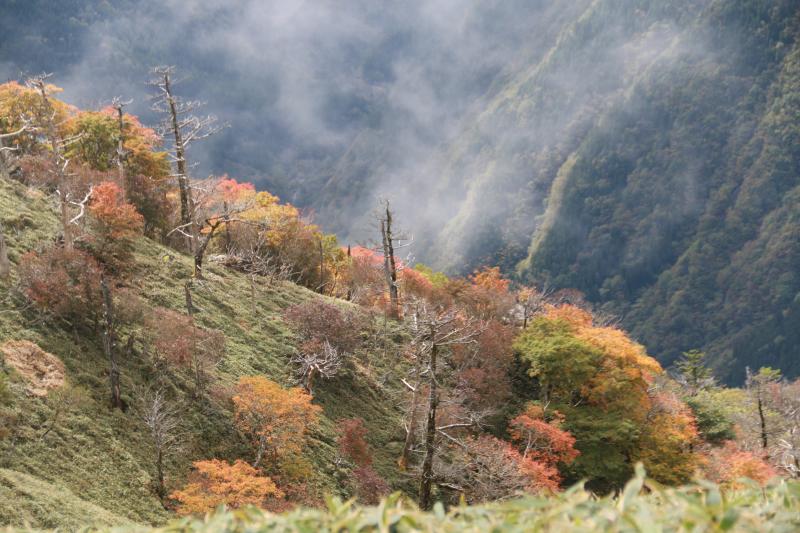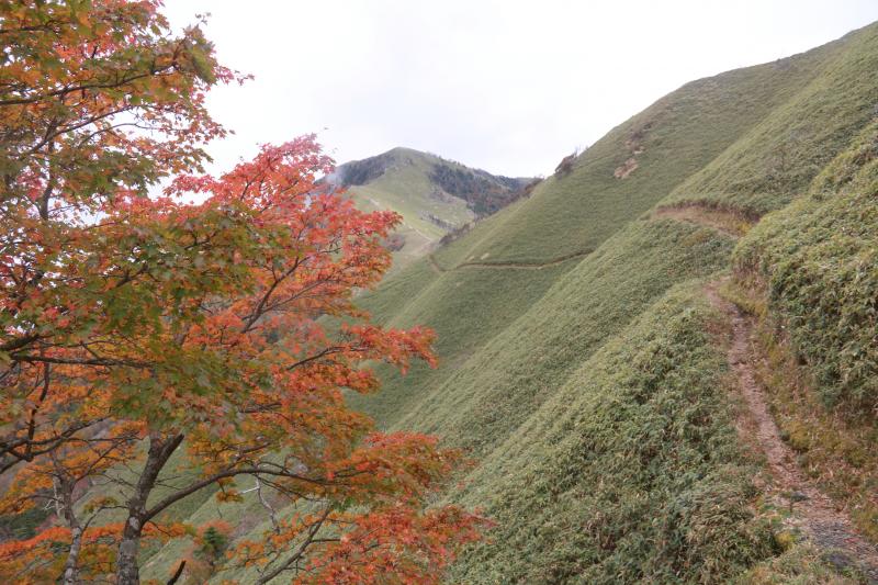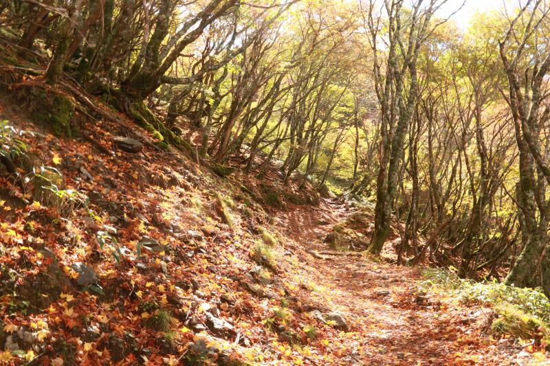 こちらから分岐を次郎笈のトラバース、大剣神(悪縁を断ち、良縁を結ぶ 30回位お参りしてます(笑)) から次郎に向かいます。今回は三嶺のトラバース道に呼ばれたのでそちらからまいります。直登りの途中の紅葉が素晴らしくもこちらのルート正解です。