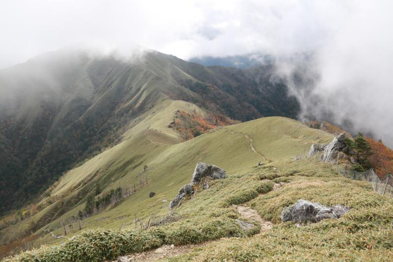剣山からの次郎笈の稜線美はすばらしく、ガスが少し上がってきておりまいたが
