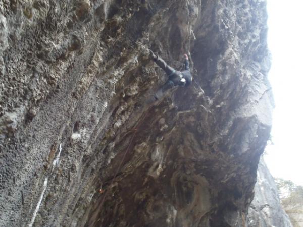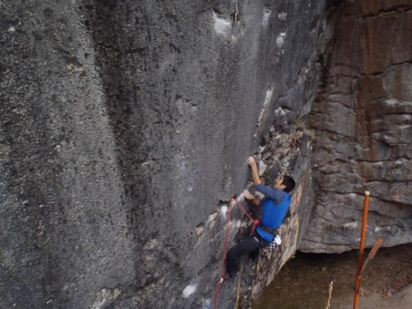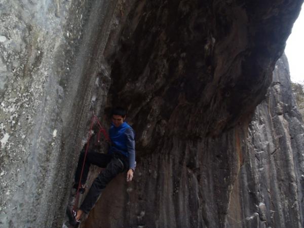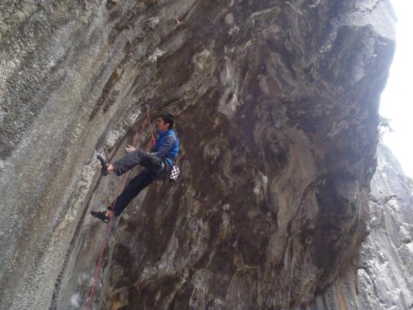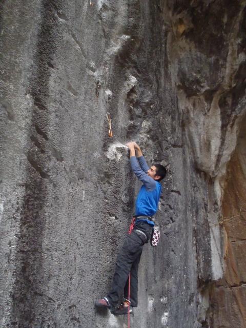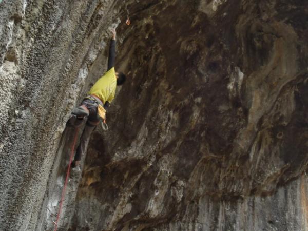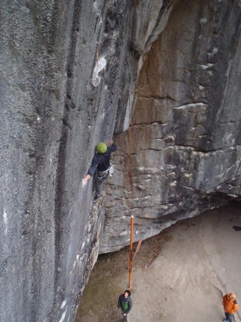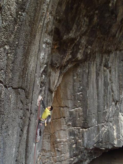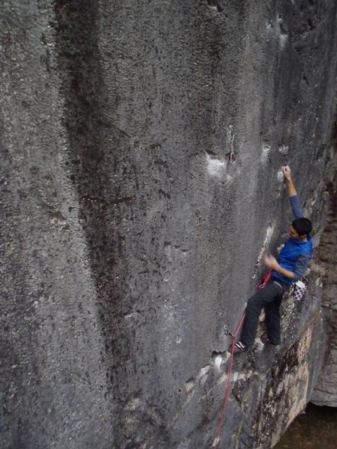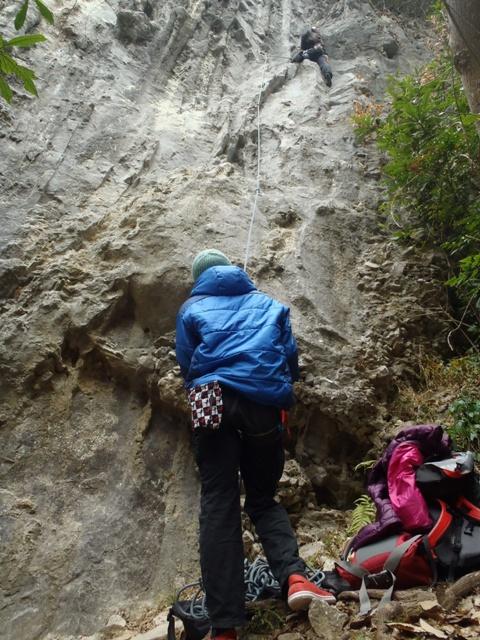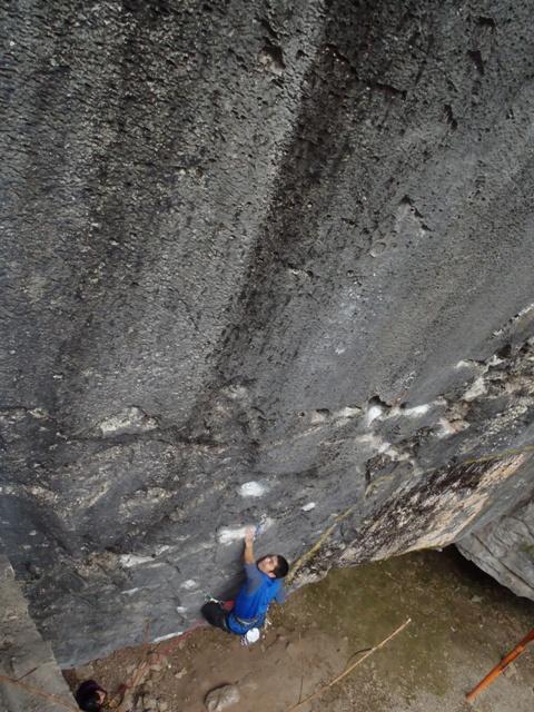 5.9~5.10bまでで満足の佐々木さんと、午後の羽山に向けて体力を明らかに温存している井坂君など石灰岩特有のコルネを使ったクライミングを楽しみました。