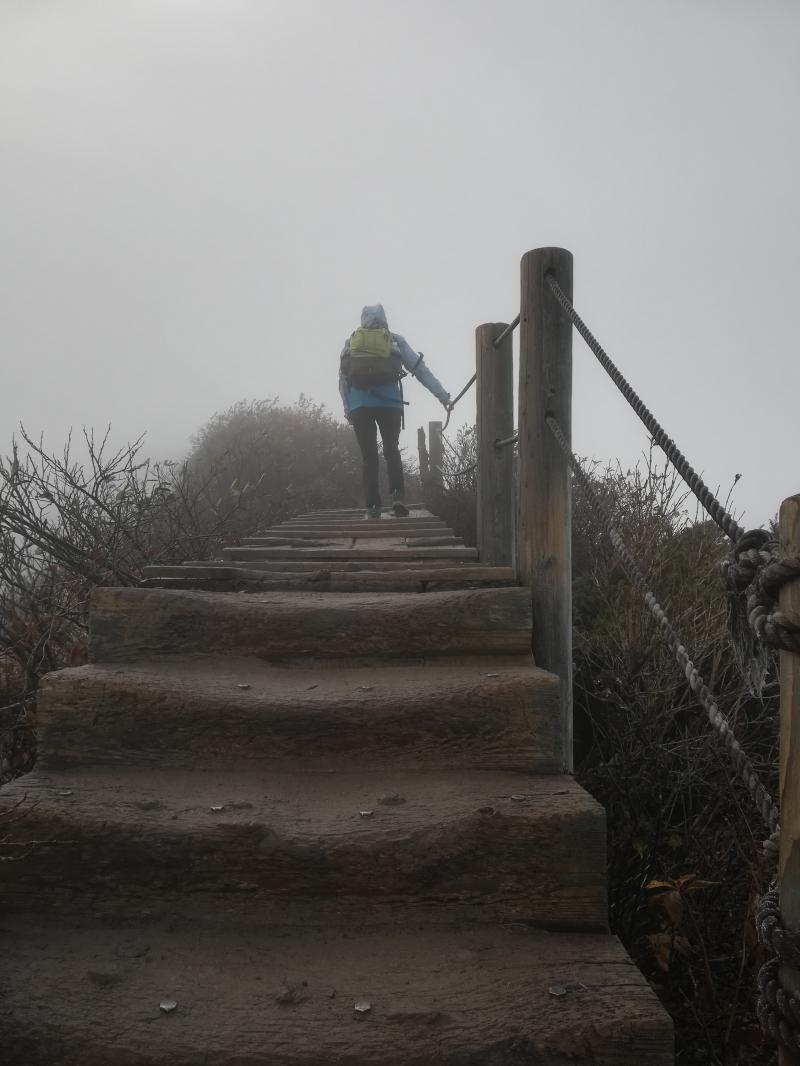 ここから先は風が強くなり、朝一で登った人が下山してきたので様子を聞くと、山頂は強風で寒いよと。