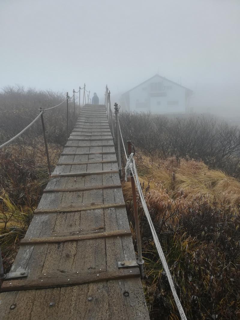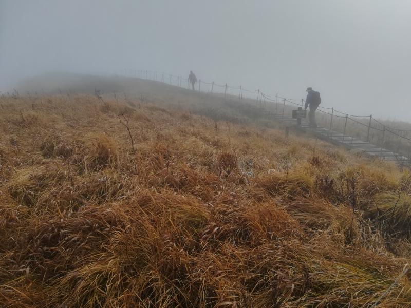 8合目を過ぎ、木道に着いても霧。スタコラサッサと弥山に行きましたが霧。霧できりきりまい(T_T)