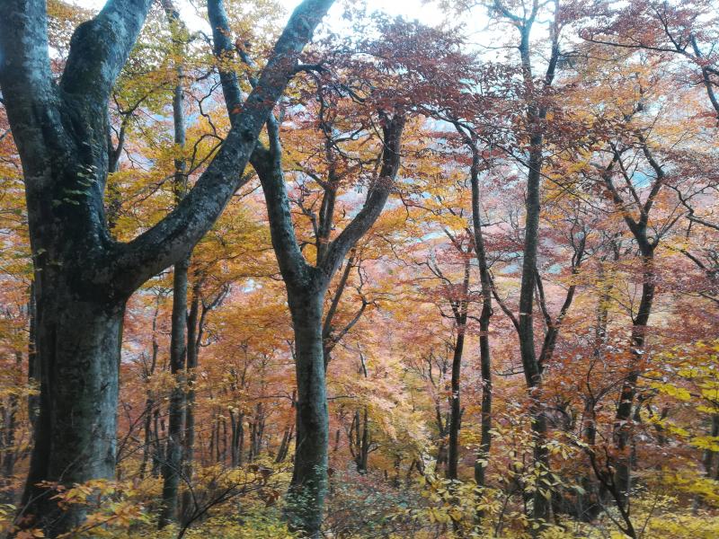 それより上部もまだ所々紅葉していましたが、ブナは大半終わっていたので、今は900m~1100mぐらいまでがピークでした。