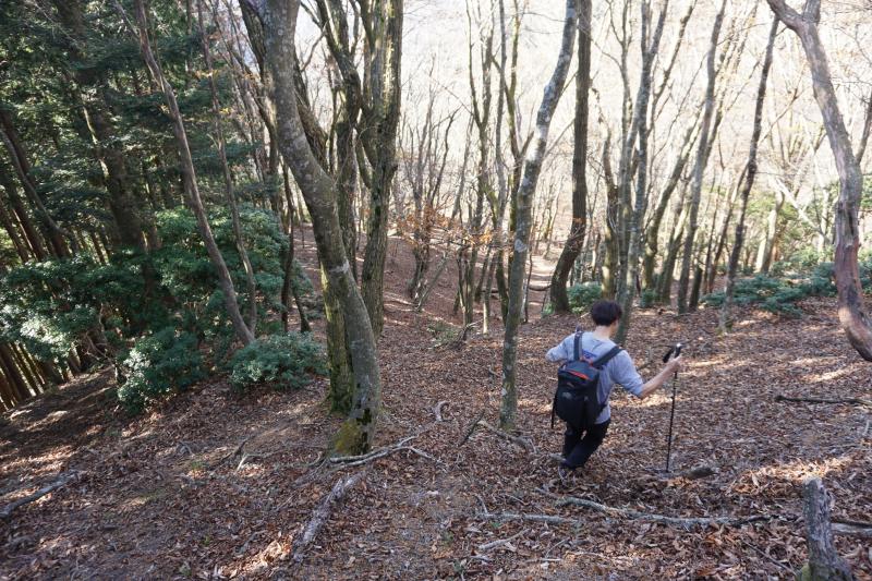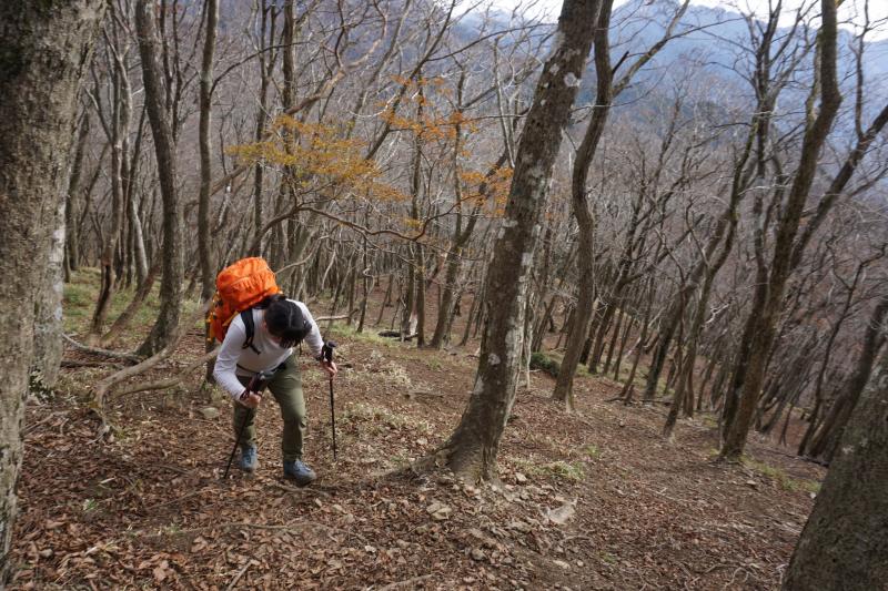 葉の落ちた樹林帯は道が広くガスると道迷いしてしまいそうです。