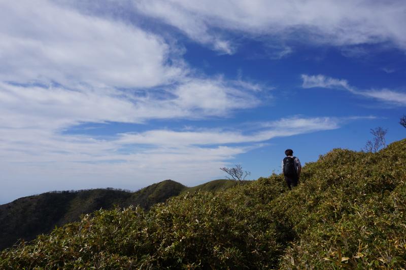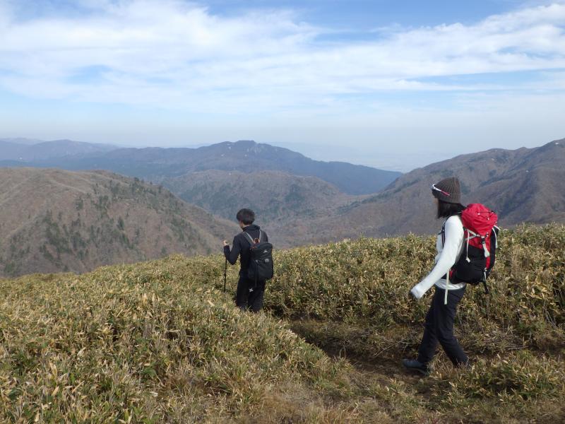 東雨乞岳の方が眺望が良く、友人「もうここまででいいのでは?」と言いますがピークハンターの私がそれを許す訳がなく、あと少しの山頂へ向けて歩を進めます。