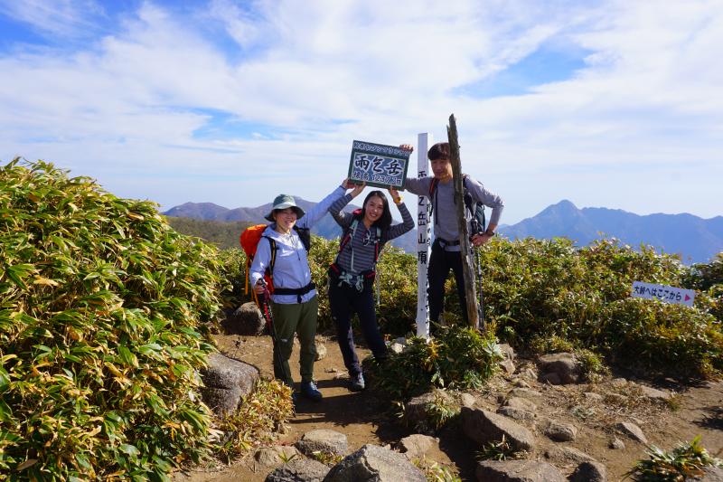 山頂へ到着したものの、東雨乞岳の方が広いし休憩するにはあっちの方が良さそうだ、ということで、記念撮影だけしてさっさと東雨乞岳へ移動。現金なものです。