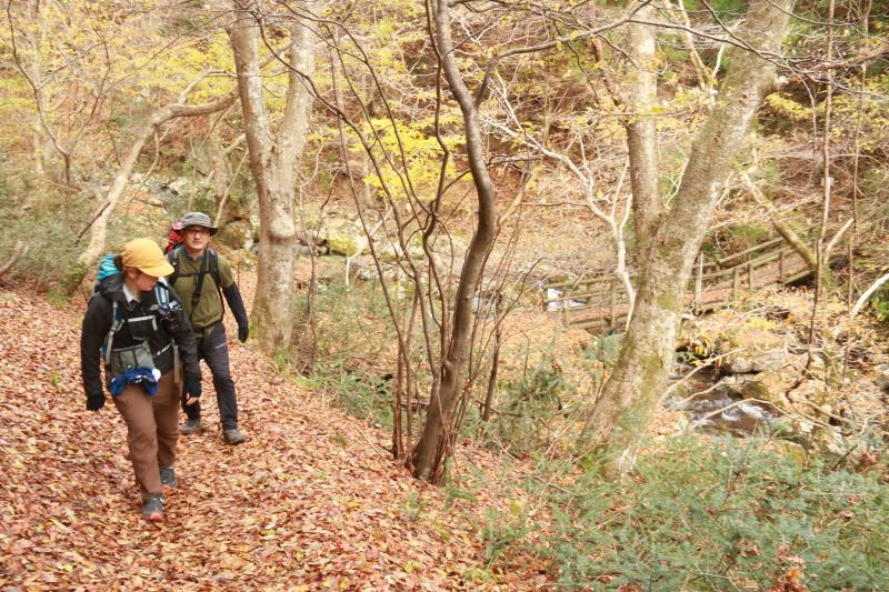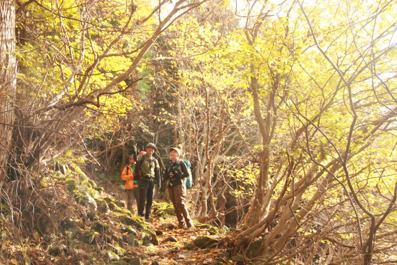 紅葉(黄葉)が美しく、紅葉と光がキラキラ輝く道中の気持ちのよい下山となりました。