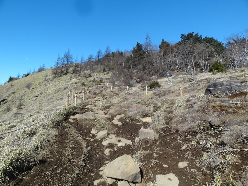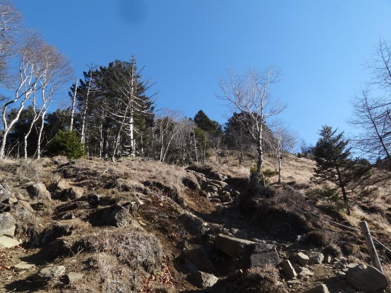 ④唐松尾根はそれほど急ではありませんが、上部で岩場のような箇所があります