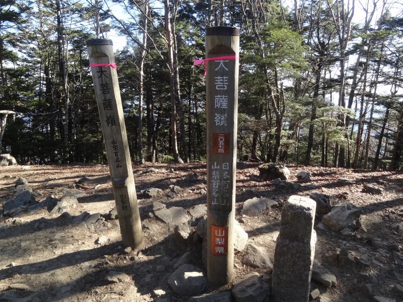 大菩薩嶺(だいぼさつれい・2057m)は山梨県東部にある大菩薩連嶺の主峰で甲斐源氏の祖・新羅三郎義光が奥州遠征時、木こりに化けた軍神の導きでここを越えた際に軍神の加護に感謝し、八幡大菩薩の名を高らかに称えたことから来ているようです。この山より南東の大菩薩峠の方が中里介山の小説のタイトルにあることから知られています。