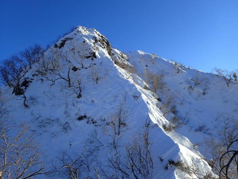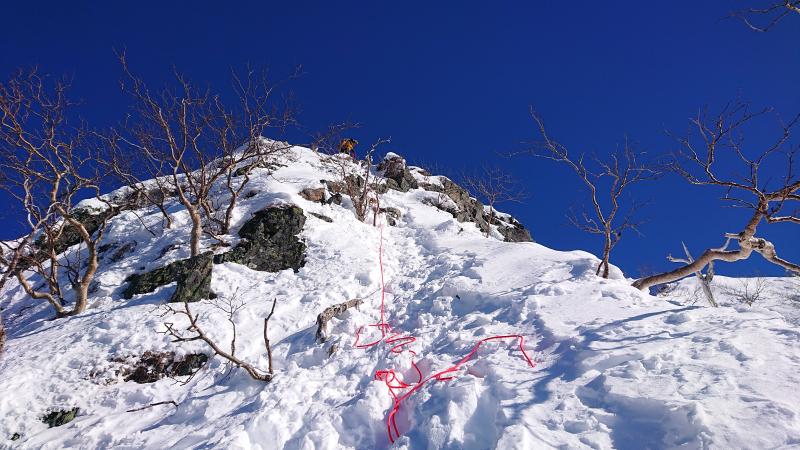 - ほぼトレース無し。積雪量はしっかりあるので下部の笹薮以外は歩き易い。