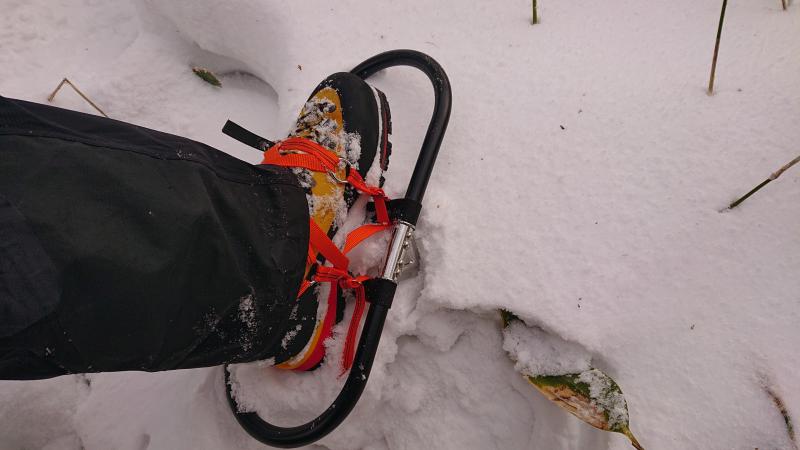 一緒に歩いている人のトレースをしっかりと踏み抜いてしまい、後方から歩いているのにヒザラッセル。