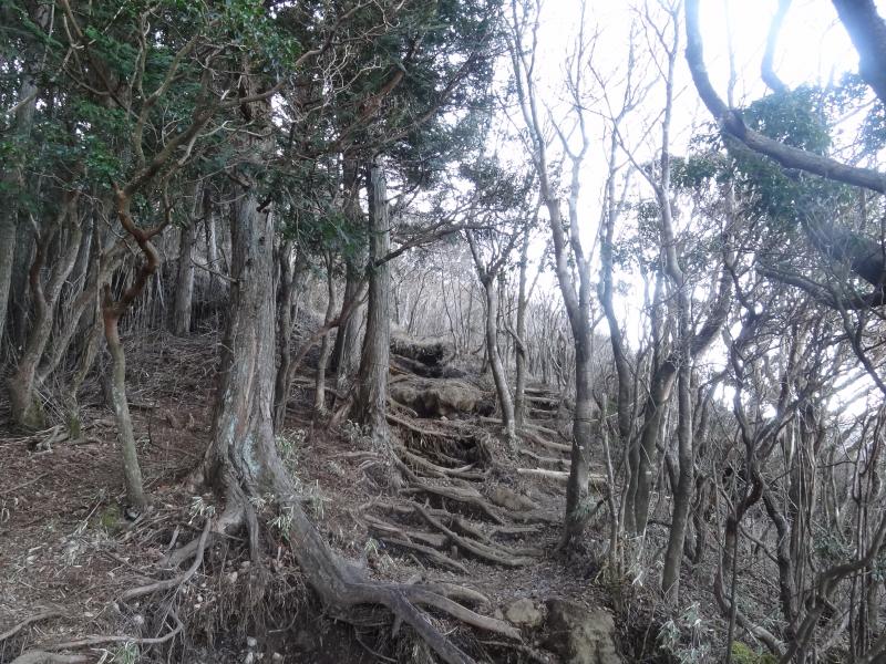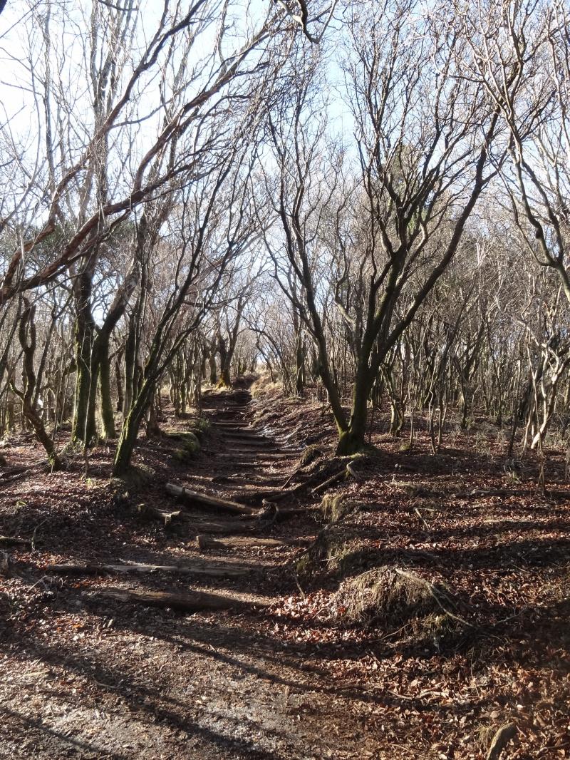 ④馬の背見晴台からは樹林帯の中で岩がゴロゴロしている箇所もあります。登山道がえぐれている箇所が多く、それを避けるように左右に道がありますが、最終的は繋がりますので歩きやすい方で進みましょう
