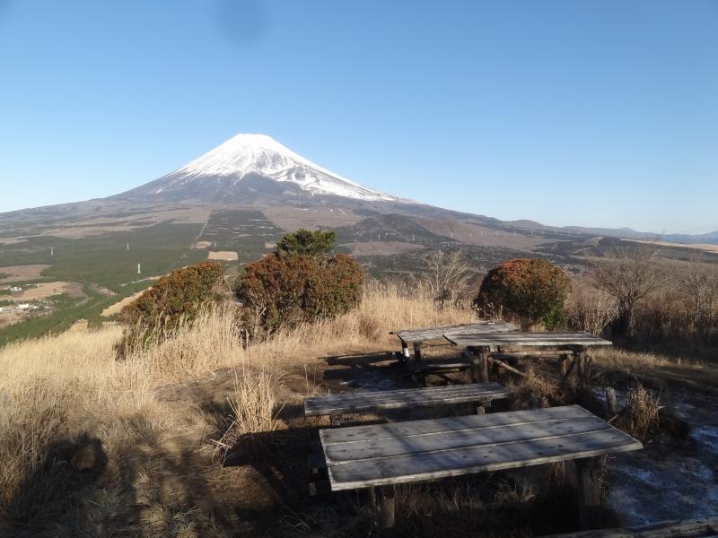 ③十里木高原展望台には展望台、馬の背見晴台にはベンチがあり、富士山絶好の展望