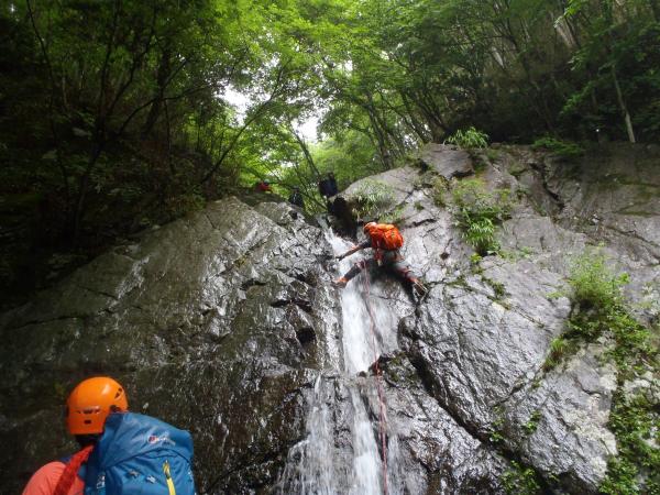 まず30Mロープを利用して、支点構築。支点は「エイトノット」で取りました。