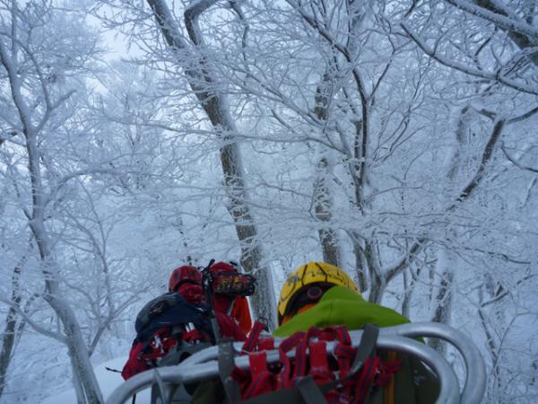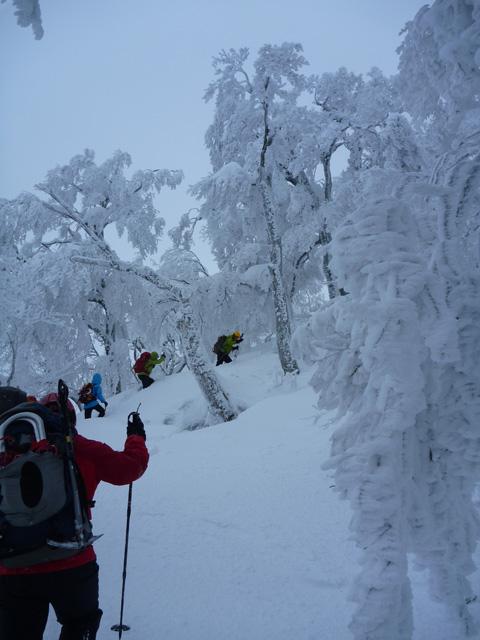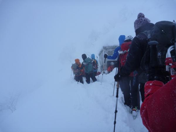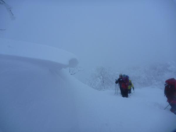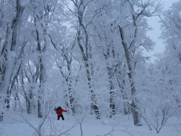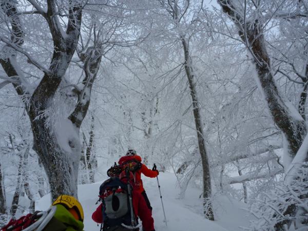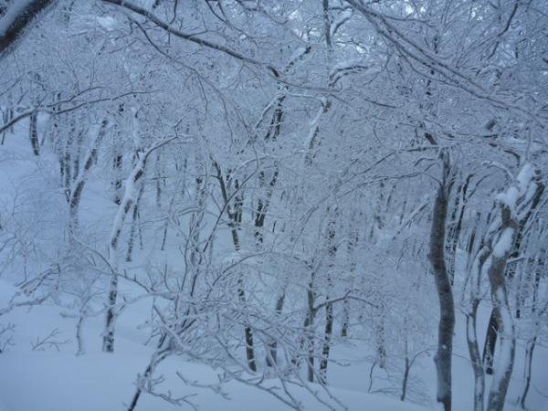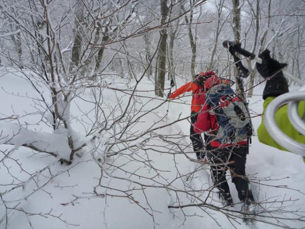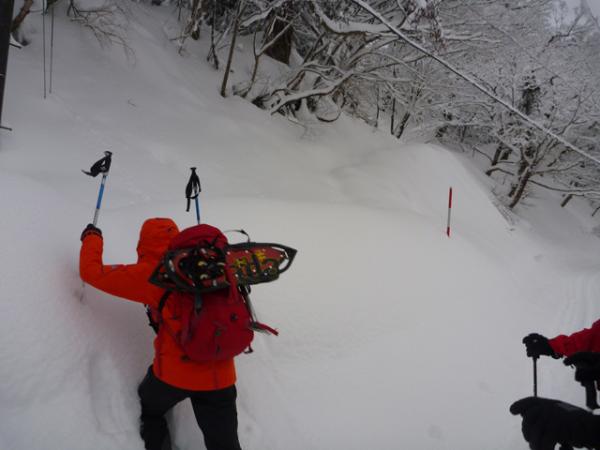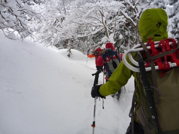 斜面も急で雪も腰まであるのでラッセルが大変でした。