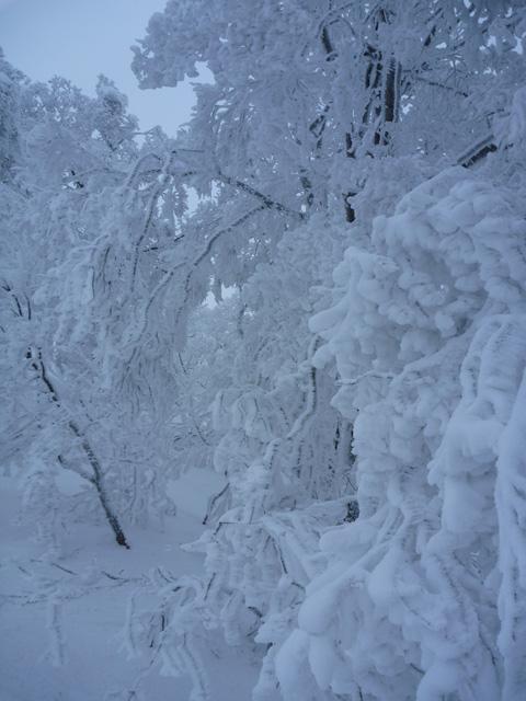 夏山登山道は夏だと永遠と階段が続きますが、雪が積もっていると全く違う世界になっていました。