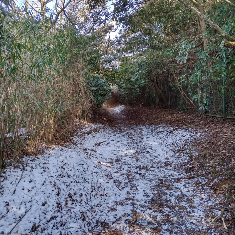 途中、生駒山ではめったに見られない薄っすら雪を発見。