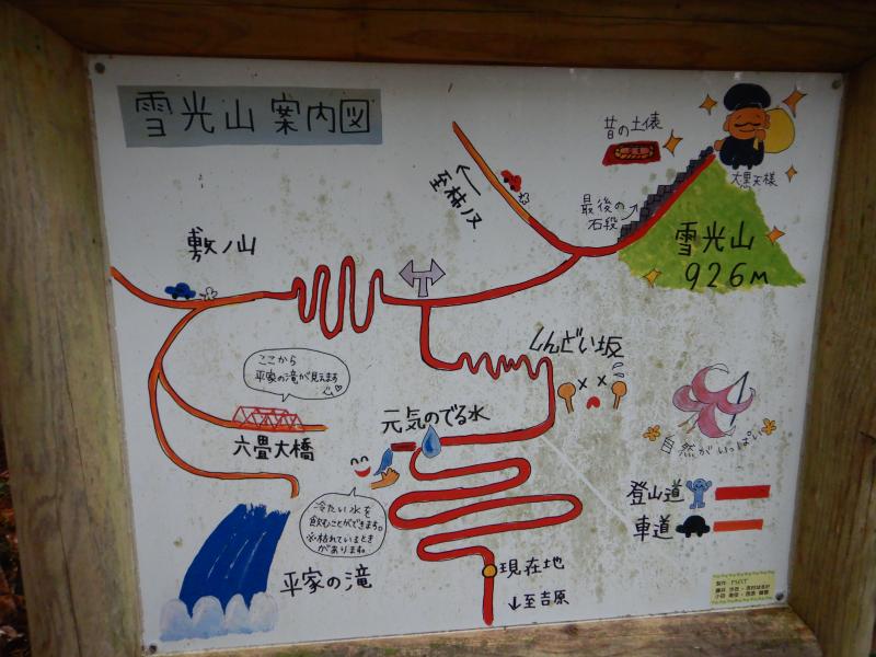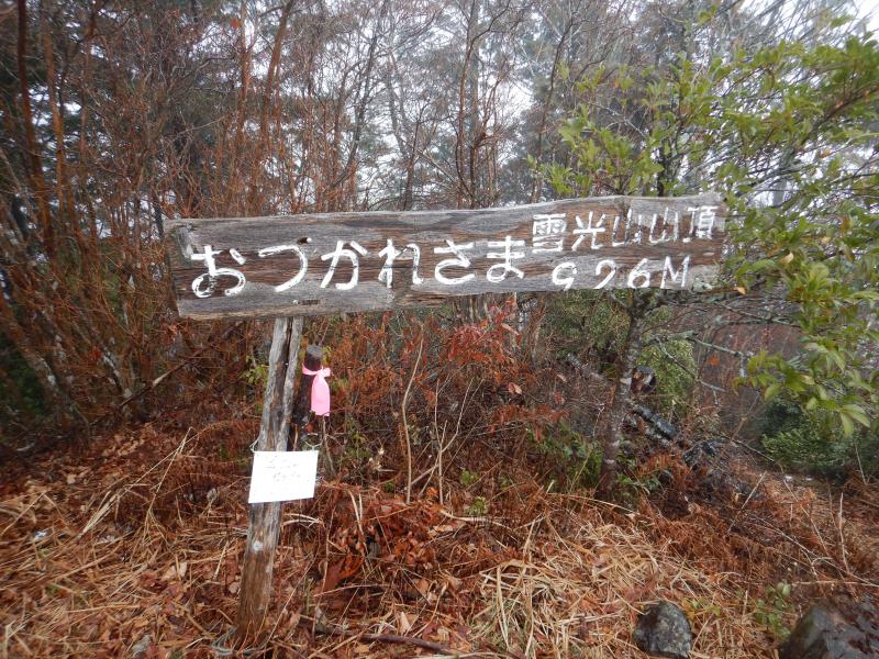 - 手水(ちょうず)登山口→(30分)手水分岐→(15分)雪光山頂上→(25分)手水登山口