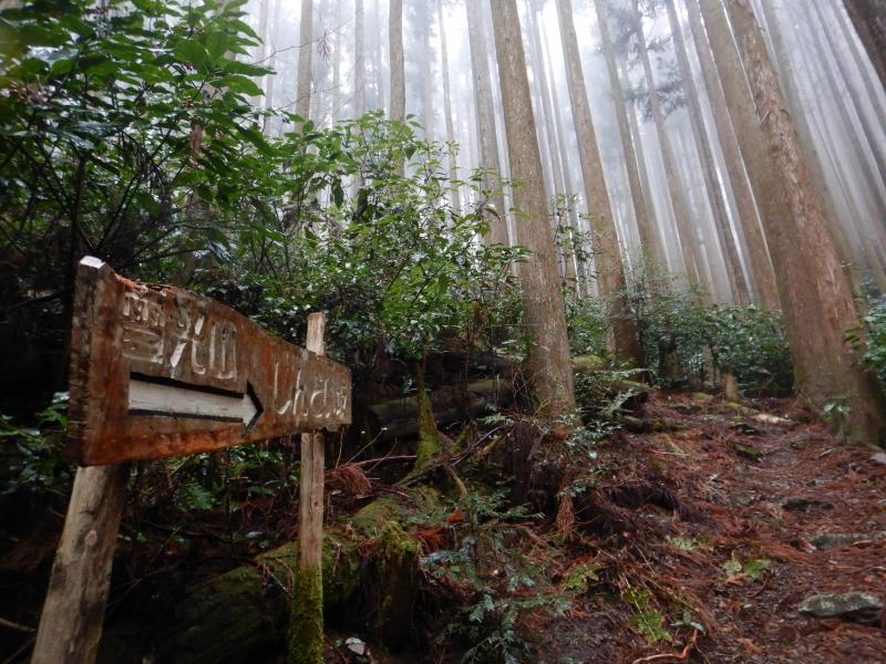 山と溪谷社『新・分県登山ガイド 改訂版 38 高知県の山』では「ちょっぴり手強い」と記載がある通り、登山道がなかなか歩きづらく、雨も相まって慎重に歩かざるを得ません。