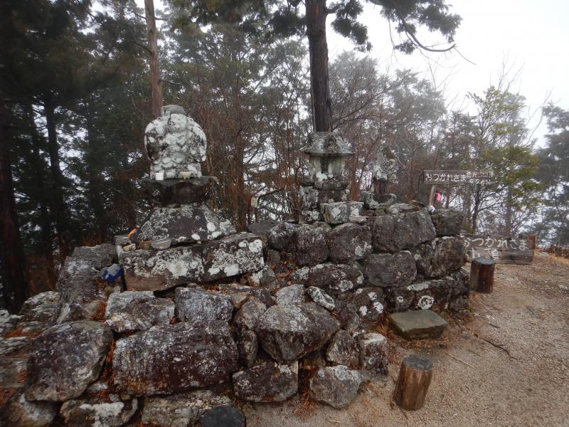 あいにくの天気だったので頂上からの展望は皆無でしたが、晴れていれば絶景が拝めそう。頂上に祀られている大黒天の石像と共に晴れた日に静かな時間を過ごしたいものです。