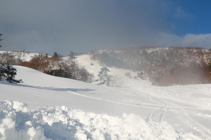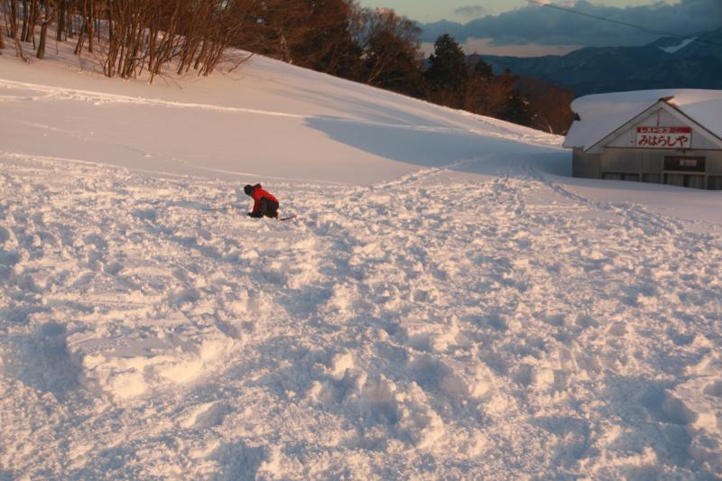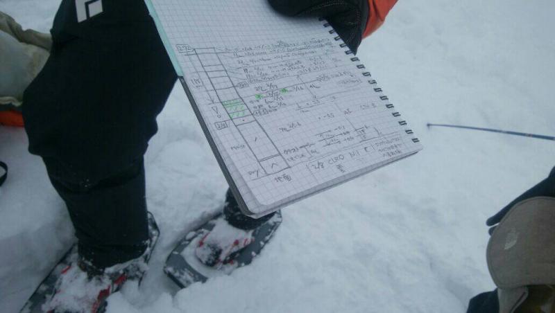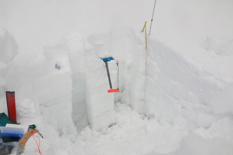 その上部 「雪粒なし新雪」 その間が非常に硬い