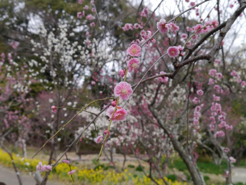 ・今年はまだ梅のお花見が楽しめます。離宮植物園の梅は満開で、水仙、菜の花と合わせてとてもきれいに咲いています。