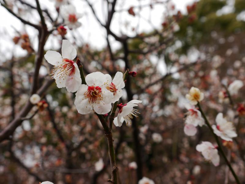 ・梅の開花状況:離宮植物園は満開、須磨浦山上梅林は早咲きが散り始め、遅咲きが咲き始めの全体で五分咲き程度です。