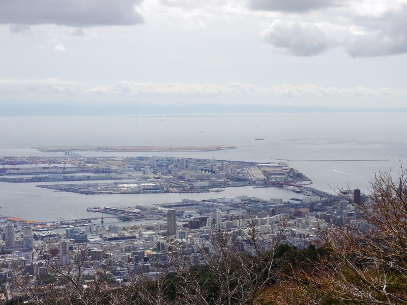 ・摩耶山まで登ったら、頂上から3分で展望抜群の掬星台で休憩をとりました。休憩の終わりごろに霰が降ってきてビックリ、3月の気候は変わりやすいですね。
