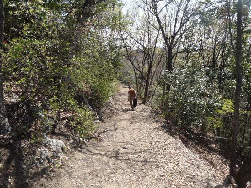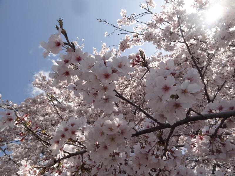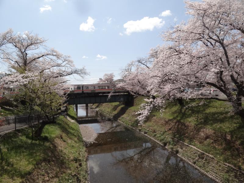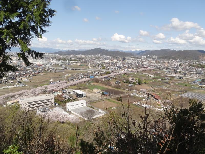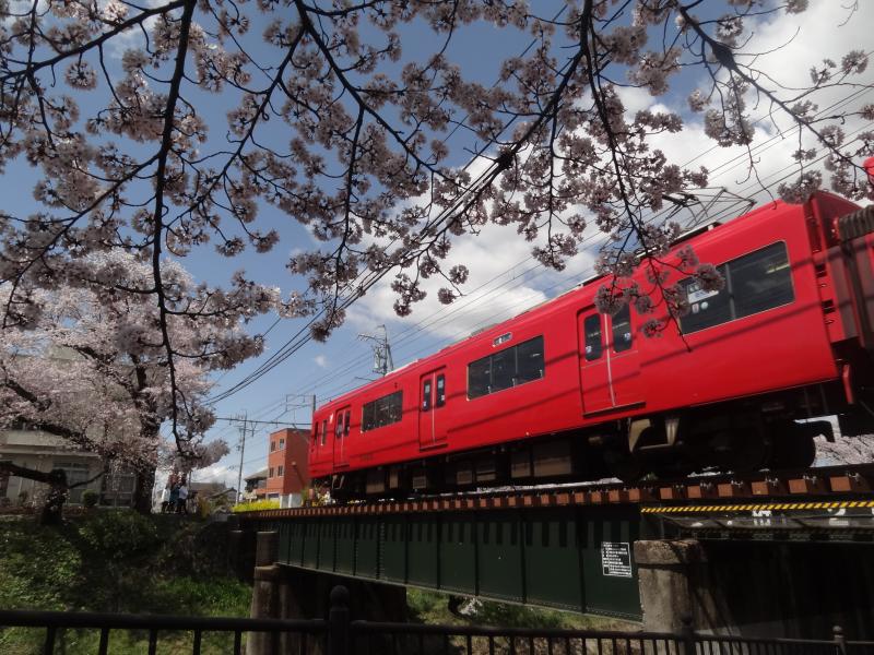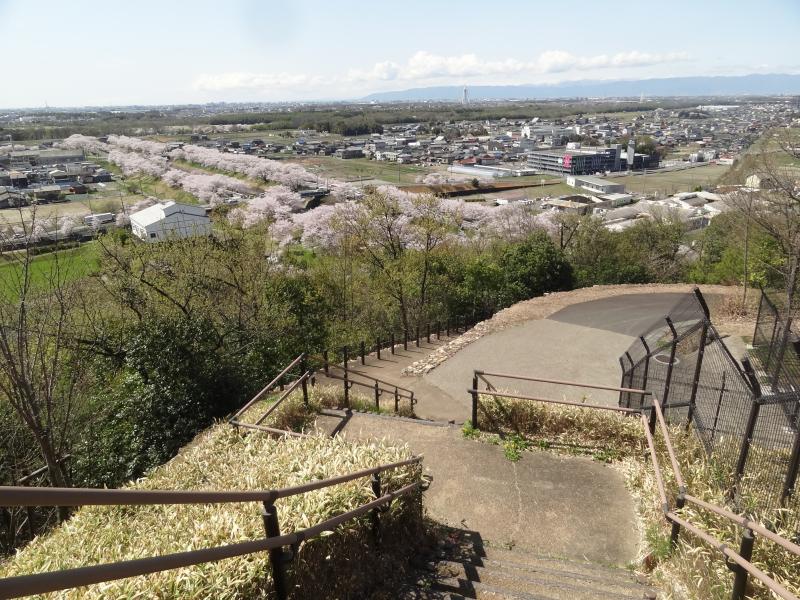 今日は昼からの出勤を利用して、各務原店に来て、まだ「日本のさくら名所100選・新境川の桜」を見た事がなかったのでこの三井山とセットで歩いてきました。駅から歩いても大した距離でもないので、各務原市役所前駅からまっすぐ南下して行くと小高い丘の山が三井山で、すぐ隣は広大な航空自衛隊岐阜基地があります。基地側からは登山道はなくもう少し南下して南側に回り込んで、三井池の畔から登りました。三井山の登山道のメインは新境川のある西側からの南北2本の登山道ですが、この三井池からの登山道を登ってもほどなくこのメインルートの南ルートに合流しました。一気にあがる登山道ではなく、迂回しながらですので傾斜も緩く、散策道といったところです。山頂まではすぐですので、皆さん運動靴で登って来る人が多いですが、途中は小石がゴロゴロしていて歩きづらいのではと思います。山頂からの展望は切り開きがあり、南北ともに抜群で今から歩いて帰る新境川の桜の筋がよく見えます。下りはメイン登山道を行きますが、同じように傾斜は緩いので小走りでも下れる感じです。南側の新境川沿いの桜も一筋のピンク色になっていて綺麗な眺めです。三井山公園に降り立つとすぐさま、新境川沿いの満開の桜が目に入ります。ここから市民公園駅まで桜鑑賞をしながら右岸左岸と歩道がある方を進みます。一般的には市民公園駅前周辺が人出が賑わいますが、この周辺の桜並木もきれいです。名鉄やJRの駅周辺まで来ると人だかりで、鉄道と桜のテーマでカメラ構える方が多いです。少し北側を進み、折り返して帰りましたが、川沿いの道の新那珂橋の袂から川面に映った桜がとても印象的でした。