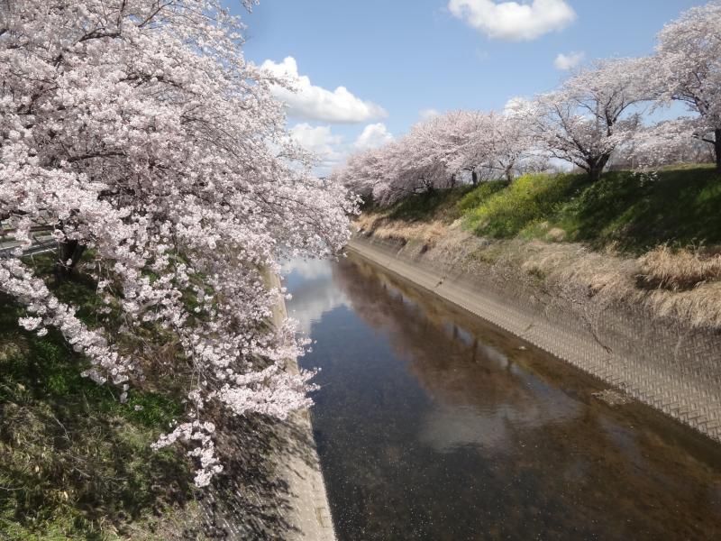 ⑥新境川沿いの桜は国道21号まで川の左岸、国道21号を信号で渡り、再び川の左岸を通るとよいです