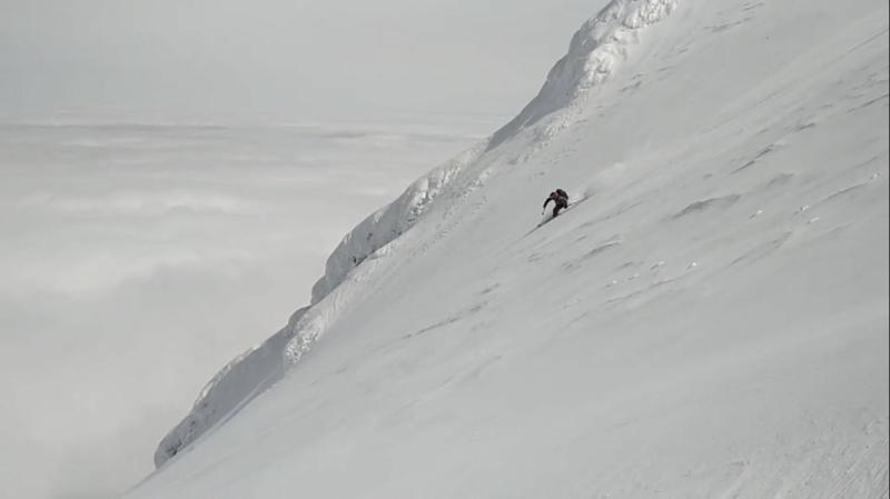 その後は良さそうな斜面を選んで雲海に向けて滑ったのですが、前日の降雪により一部パウダースノー☃