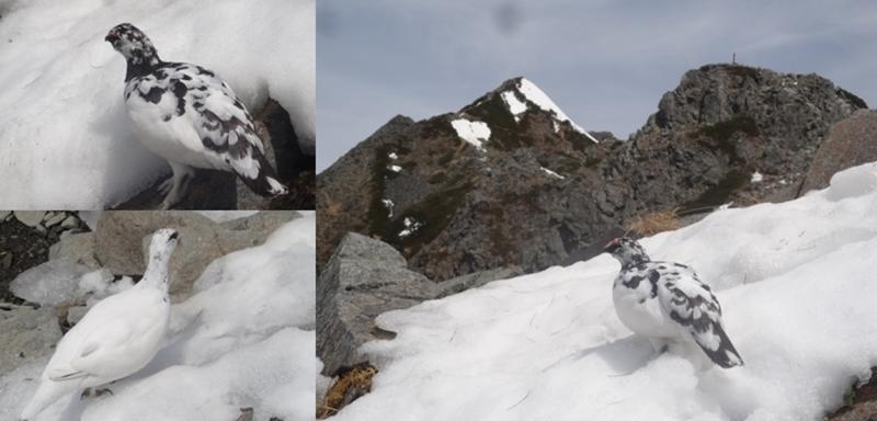 独標で11:30ということで微妙な時間、この先が核心部ということで登山道を観察するとここまでと違って中途半端に残雪があり、近くて遠い西穂高山頂。パートナー用にロープを持ってきたものの、ホールドもしっかりしていてクライムダウンで行けそうな感じなので先行して足の置き位置を確認しながら進んでもらう。雪の着き方からして独標からの下り、ヤセ尾根、次のピークの下りが最も嫌な感じ、その先は岩場のアイゼントレーニングが続きます。手で持つホールドはしっかりしていて、登りやすく、たまに浮き石があるので注意しながら進み、八峰のピラミッドピークへ到達。ここで12:30ということでここまで来たどのパーティーも終了、私は単独で7峰までピストンしました。この先、四峰チャンピオンピークまでは同じようにアイゼントレーニング、主峰の最後の上りで雪壁の上りという感じに見えました。ダッシュで登れば行けそうな感じでしたが、雪がさらに柔らかくなってきてまだ帰りの方がいやらしいのでここで退散。帰りもアイゼントレーニングで独標・独標手前の岩場まで帰るともう安心。私はここでアイゼンを外し、ためらいもなく夏道を選んで進みます。炭酸アタックの為に先に西穂山荘まで先行しました。ほぼ無風で暑くて、ここで飲んだコーラが最高に美味しかったです。行きと違い、ここから見る乗鞍はもう厚い雲で隠れて、明日は天気が悪いのがわかりますが、なんとかもってくれたし、途中で雷鳥のツガイ?しかも白色と茶色が同時に見れたというプレゼントがあり西穂高まで行けずとも十分に満足。
