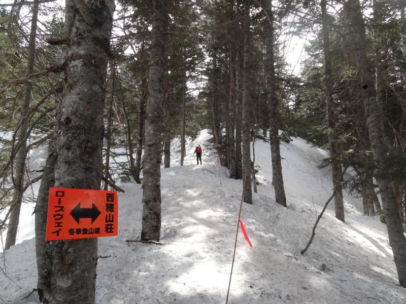 ④西穂山荘までは最後まで雪道で、しっかりトレースがあります