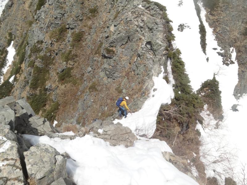 ⑩7峰までは雪道で、7峰直下で鎖場トラバースは雪はありません