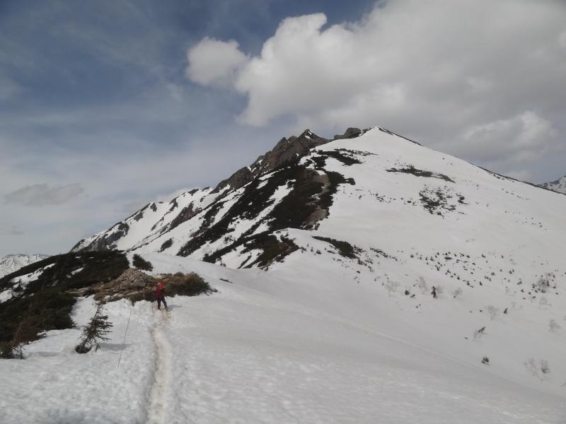 ⑥丸山山頂付近で雪がなくなり地肌が見えます