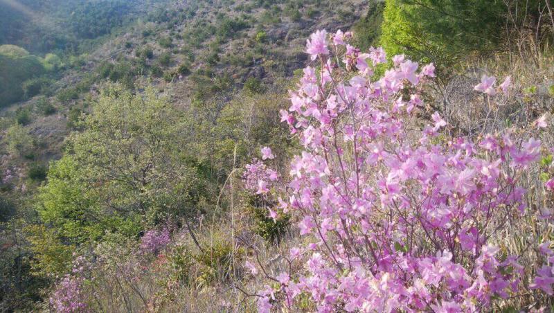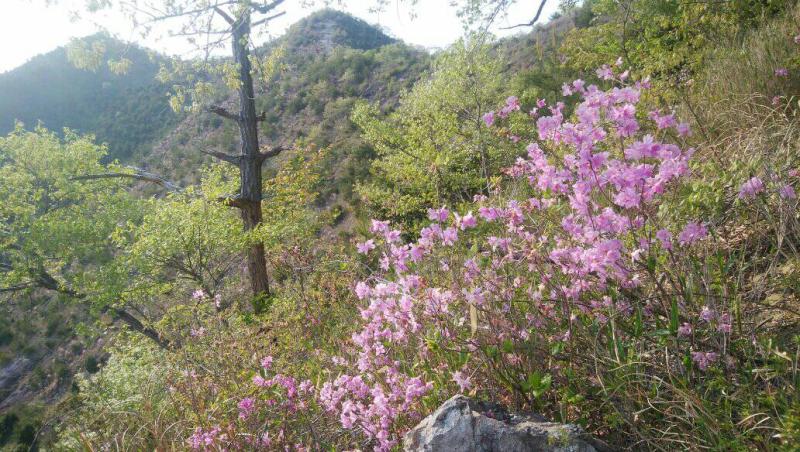 山がミツバツツジで染まっておりました。満開のミツバツツジジャストの日だったように思います。