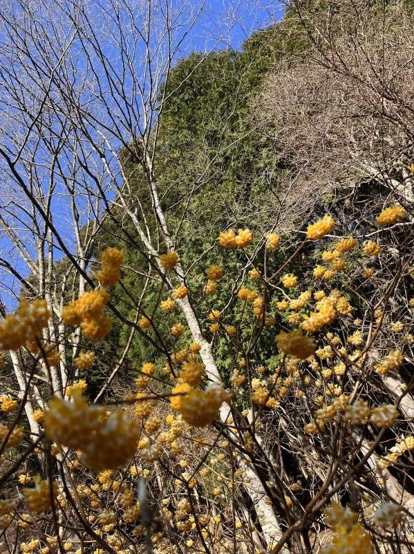 西丹沢ビジターセンター周辺や登山口から少し進んだあたりにミツマタが沢山咲いていました。ほぼ満開?!ほのかな香りとぼんぼりのような黄色い花に癒されます。