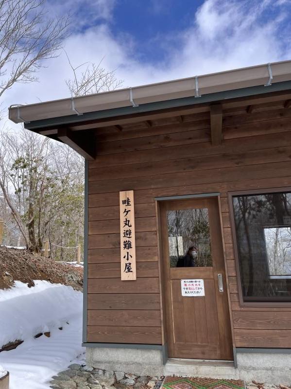 山頂をほんの少し先に進んだところに新しく避難小屋ができました。