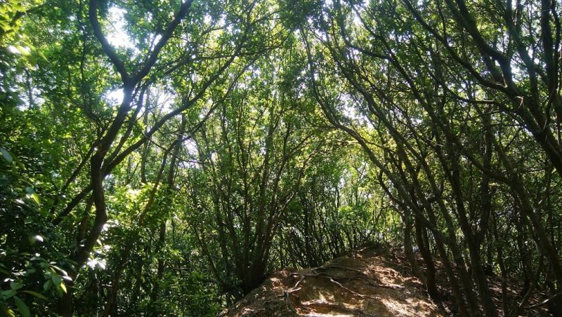 ただ暑い・・・ウバメガシのトンネルの新緑も美しく癒されます。