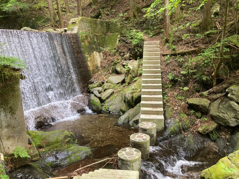 三段の滝は有名な観光地になっていて高さが50mあり立派な滝です。休憩するベンチもありました。