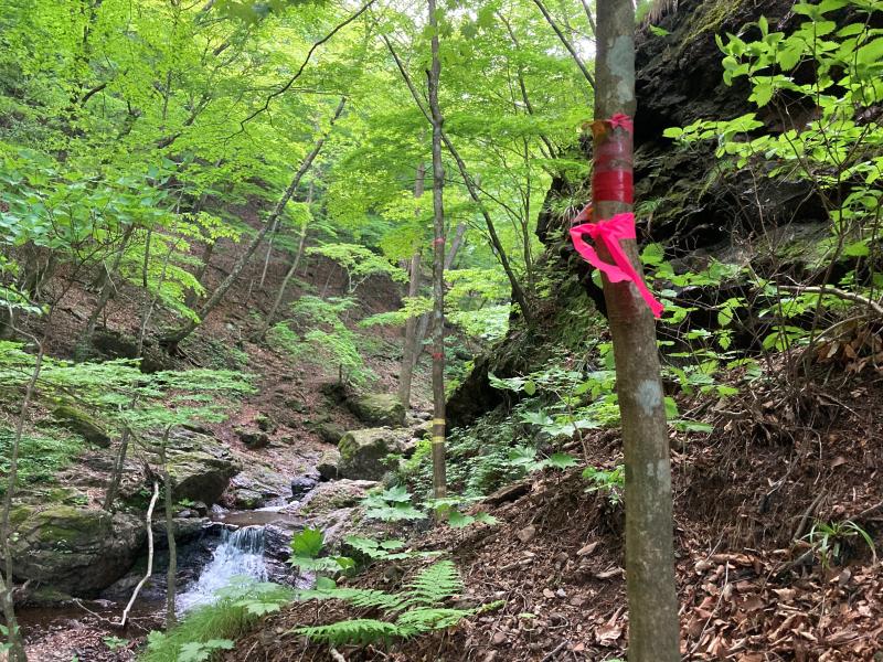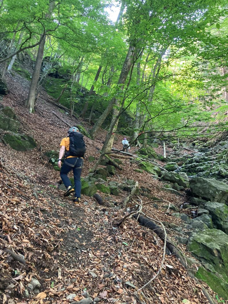 三段の滝を左岸から巻きます。ややしっかりした巻道ですが、濡れてる岩場があるので通行には注意が必要です。