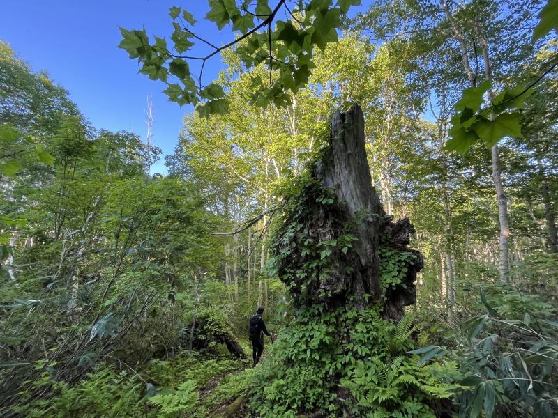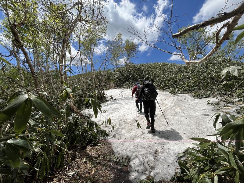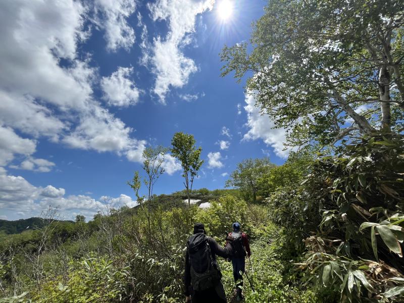 笹に囲まれて見通しが悪い箇所が何カ所かあったので、ヒグマとの鉢合わせに注意するために声を出した