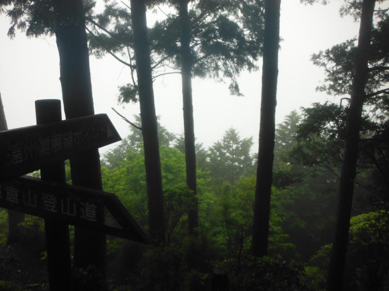 山頂の展望はありませんが しばらく歩くと展望スポットがあります