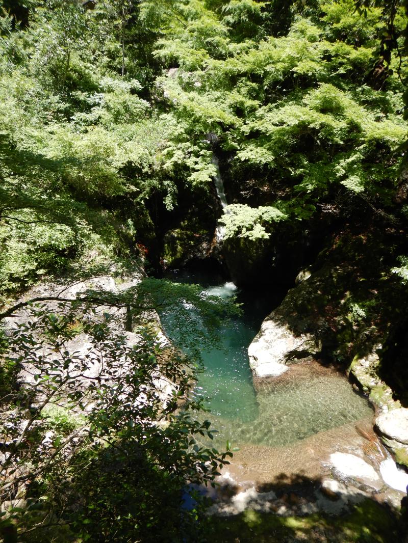 雨竜の滝のちょうどすぐ上流が竜宮淵だったので、行ったときに滝の落ち口をチェックしたら、下降支点を木で取れそうでした。せめて雨竜の滝を下降してキャニオニングっぽいことをしたい!
