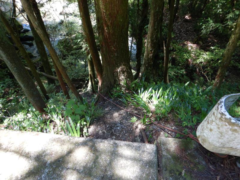 石柱からさらに上流に向かって車道を歩くと沢への降り口が見つかりました。