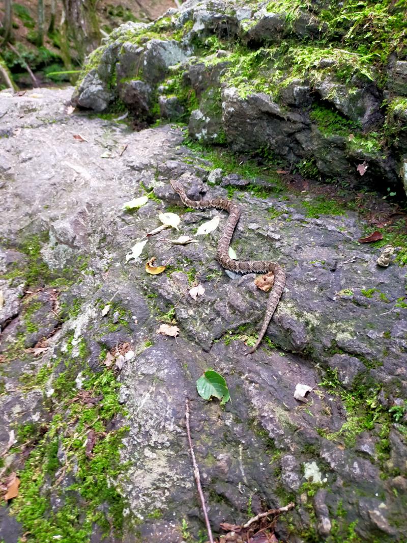 ロープを持ったり手をついたりという場面が多いのですが、岩に手をついた先に何かを感じ、視線を向けると、蛇!ヤマカガシ!めっちゃ叫んでしまいました!