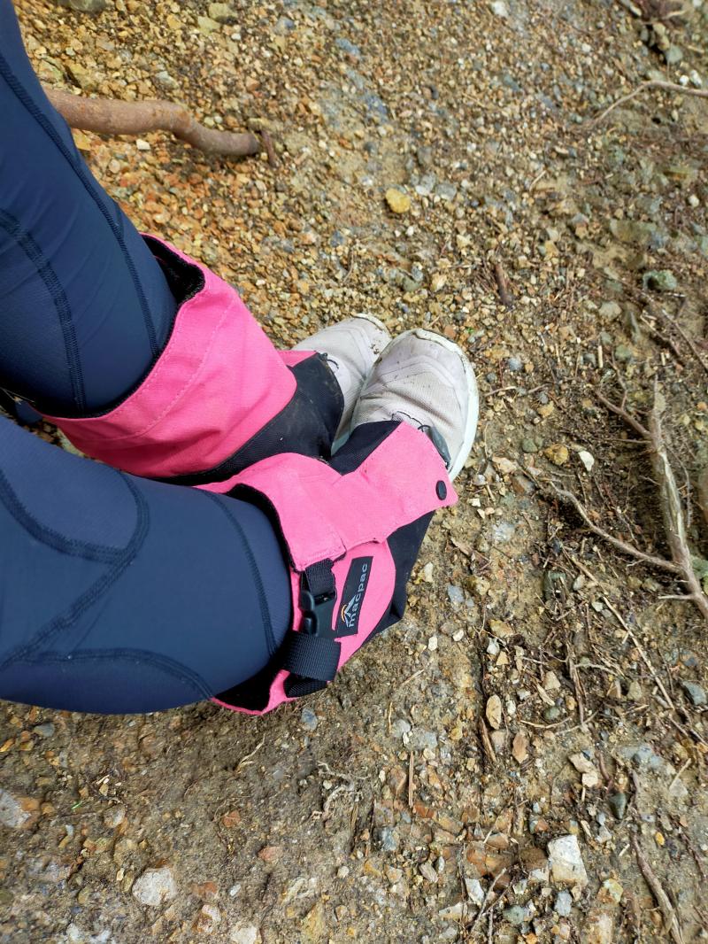 今回、ローカットシューズにくるぶし丈の靴下、機能性タイツ、半パンという軽装でした。足元が汚れそうかなと、ゲイターをつけていたのですが、途中でゲイターの中に石が入っているような感覚があり、見てみると、ヒル!