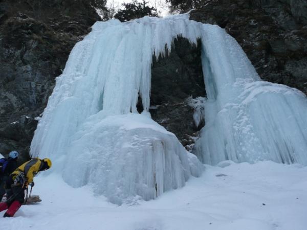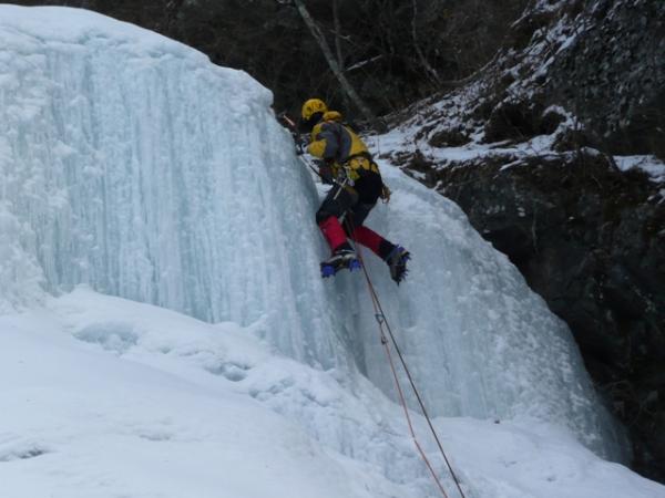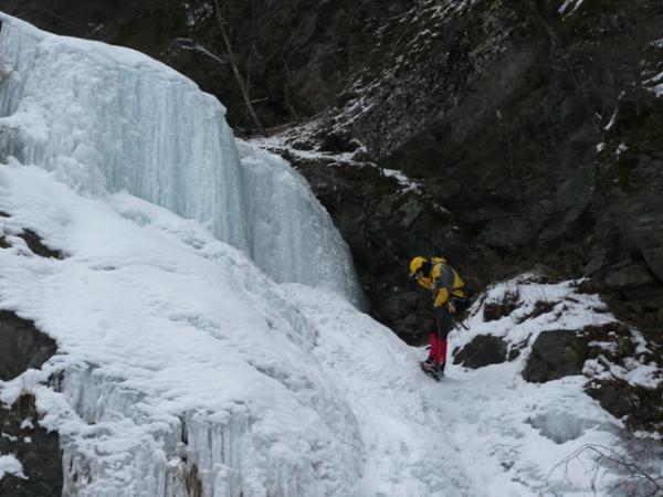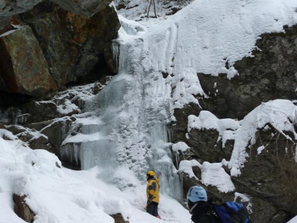 - 積雪が多く思ったよりアプローチに時間がかかりました。氷は良く発達しており硬く良好でした。