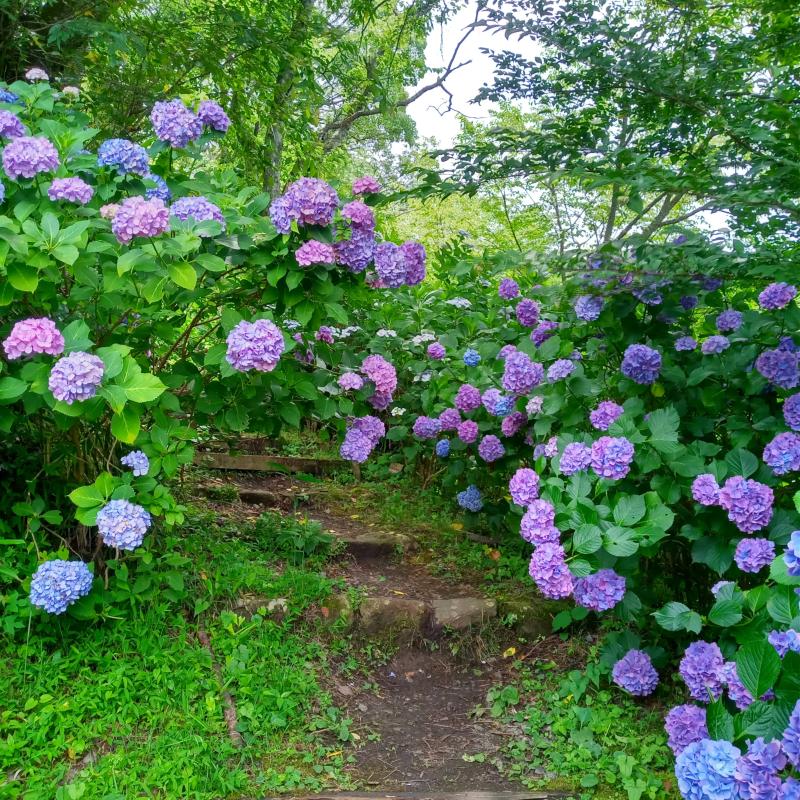 - あじさい園のアジサイは例年では6月中旬~7月中旬が見頃です。